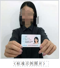 4、拍摄时,手持本人身份证,将持证的手臂和上半身整个拍进照片。姿态端正,双眼自然睁开并平视,耳朵对称,嘴唇自然闭合,头部和肩部要端正,左右肩膀平衡。