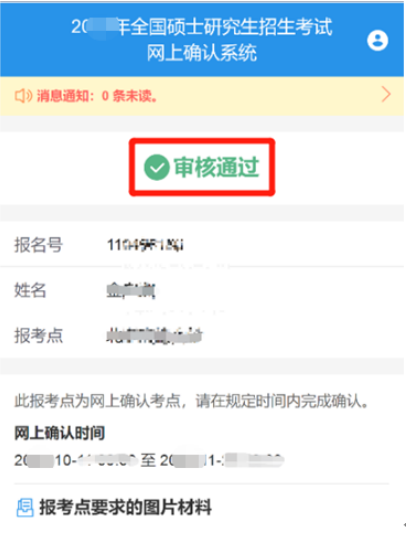 (一)审核通过:表示网上确认工作完成,考生登录系统后可看到如下页面。